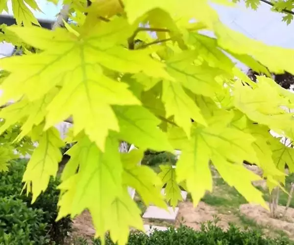 4. 叶斑病:该病害主要危害糖槭叶片。 初期多在叶基部或叶脉基部形成小斑,以后逐渐扩大成不规则斑,病斑大小不等。 病斑退绿失水后,变成黄白色,象薄纸一样;叶片有的是在病斑穿孔后脱落,有的是在病斑不大时即脱落。 前些年,糖槭叶斑病在哈尔滨市区的发生比较严重,在7~8月份有大量叶片枯黄脱落,严重时树上绿叶所剩无几,呈枯树状。 目前,杀菌剂可杀得、百菌清、甲基托布津和退菌特等对糖槭叶斑病分生孢子的萌发有极好的抑制作用。 建议在5月初至7月初,视降雨情况,施药3~ 4次。