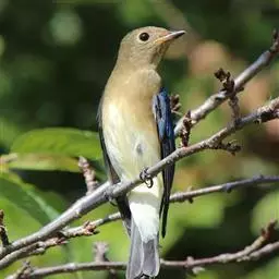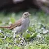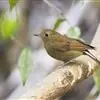 雌鸟上体橄榄褐色或橄榄黄褐色,眼先和眼周淡茶黄色,尾上覆羽和尾棕褐色,飞羽褐色,羽缘棕褐色。颏灰白色,喉、胸淡灰褐色或淡土褐色,颏、喉和头侧常缀有赭色,腹淡灰色,尾下覆羽皮黄色。