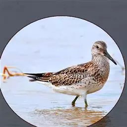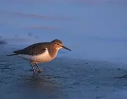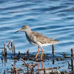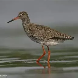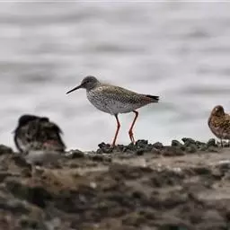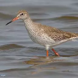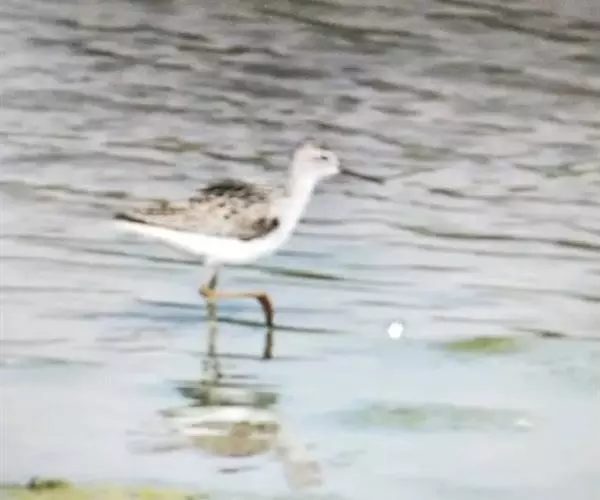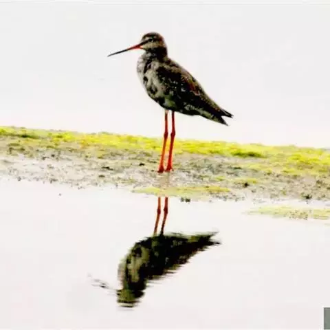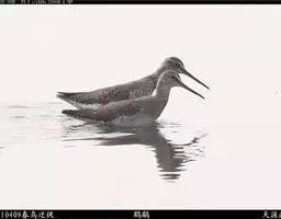 红脚鹬:体长28厘米,上体褐灰,下体白色,胸具褐色纵纹。飞行时腰部白色明显,次级飞羽具明显白色外缘。…