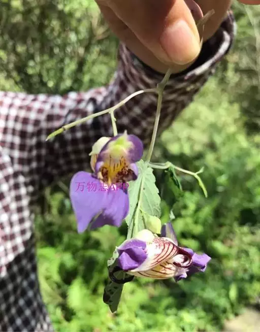 与瓜叶乌头的区别:茎上部叶腋有球形小珠芽,在节的附近以及花梗都有开展的柔毛。花瓣的距长约1毫米。