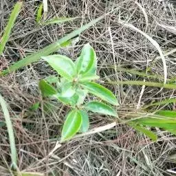 植株高8-35厘米。块茎长圆形,肉质,长2-3厘米,直径1-2厘米。茎粗壮,直立,圆柱形,下部具4-6枚叶,向上具1-3枚苞片状小叶。叶片线状披针形至近长圆形,长10-15厘米,宽1.5-2厘米,先端渐尖,基部抱茎。