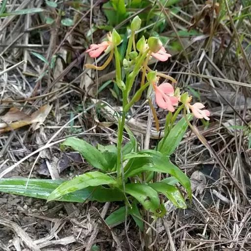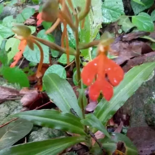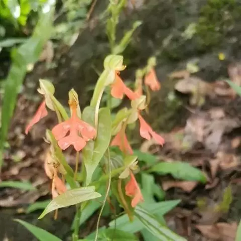 橙黄玉凤花(学名:Habenaria rhodocheila Hance)是兰科、玉凤花属植物,多年生草本,高8-35厘米。块茎长圆形,肉质。叶条状长圆形,长10-15厘米,先端渐尖,基部抱茎。总状花序具2-10余朵疏生的花,花苞片卵状披针形;子房圆柱形;花中等大,萼片和花瓣绿色,唇瓣橙黄色、橙红色或红色;中萼片直立,近圆形,凹陷;侧萼片长圆形;花瓣直立,匙状线形;唇瓣向前伸展,轮廓卵形。蒴果纺锤形,花期7-8月,果期10-11月。