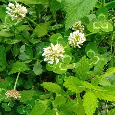 白车轴草,豆科车轴草属的多年生草本植物,茎贴地匍匐;叶柄直立,小叶心形,边缘具细齿,叶脉明显,…