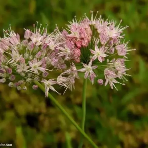野韭是一种葱科、葱属,多年生草本植物。具平伸粗壮根茎。鳞茎圆锥形,粗8-20毫米,数枚聚生;花葶高20-65厘米,圆柱形;叶基生,条形,短于花葶,宽2-10毫米。总苞宿存;伞形花序半球形,多花;花被半球状,淡红色至紫红色;花被片6,长4-6毫米;花丝基部合生;花柱伸出花被。花期秋季。生于海拔460 -2100米的向阳山坡、草坡或草地上,叶可食用。