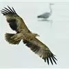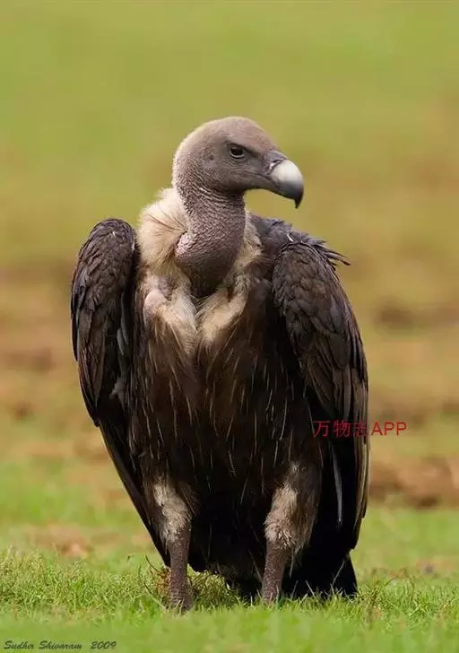 秃鹫(学名:Aegypius monachus):是鸟纲、隼形目、鹰科的大型猛禽,体长108-120厘米。通体黑褐色,头裸出,仅被有短的黑褐色绒羽,后颈完全裸出无羽,颈基部被有长的黑色或淡褐白色羽簇形成的皱翎。幼鸟比成鸟体色淡,头更裸露,亦容易识别。