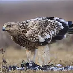 白肩雕:又名御雕,是大型猛禽。体长73-84厘米。体羽黑褐色,头和颈较淡,肩部有明显的白斑,在黑褐…