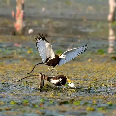 凤头麦鸡:中型涉禽,体长29-34厘米。头顶具细长而稍向前弯的黑色冠羽,像突出于头顶的角,甚为醒目。…