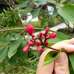 变叶珊瑚花,是大戟科麻风树属常绿灌木。变叶珊瑚花单叶互生,倒阔披针形,叶面为浓绿色,叶背为紫绿色,…