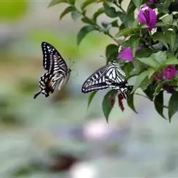 凤蝶的成虫性成熟后,在蛹中沿着头和胸破壳钻出,刚羽化的蝴蝶翅膀皱褶和腹部膨胀,这时的蝴蝶无法躲避天敌,翅膀展开后,凤蝶就可以飞翔了,凤蝶的前后翅不同步扇动,成虫以腐烂果实的汁液为食物。
