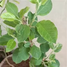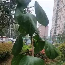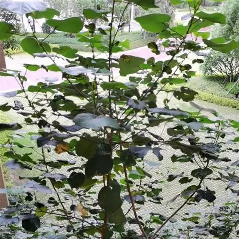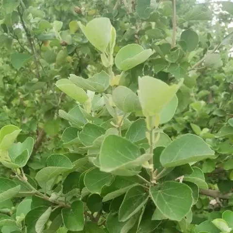 叶互生,卵形先端锐尖,基部钝圆形上半部粗锯齿缘。