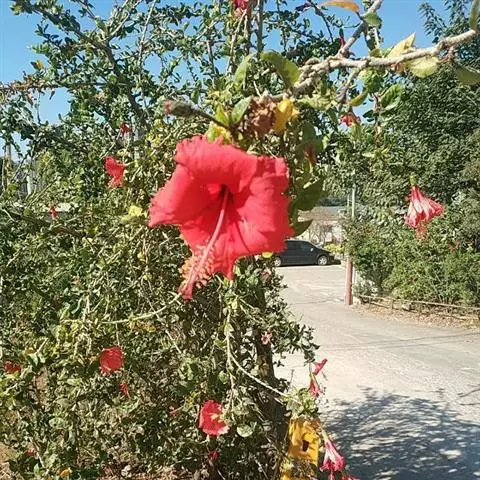 重瓣,较朱槿为大,花萼小,钟形,先端5裂,基部具有苞片多枚;花瓣多枚,排列成彩球状,全年开花,花大型单立腋生,以鲜红色最多。