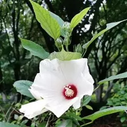 海滨木槿是锦葵科木槿属植物,落叶小乔木,株高3-5米,胸径20厘米,扁球形树冠,枝叶繁盛。…