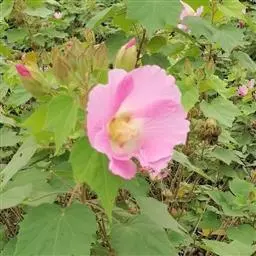 粉紫重瓣木槿(学名:Hibiscus syriacus f. amplissimus)为锦葵科木槿属木槿下的一个变型,为多年生灌木,生长速度快,可1年种植多年采收。分布于中国大陆的山东等地。