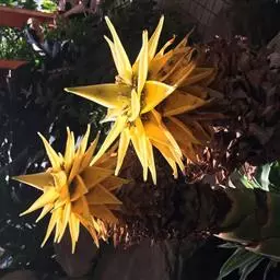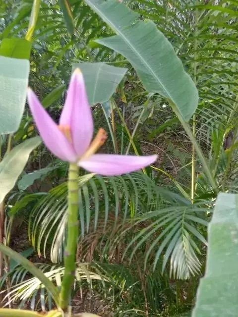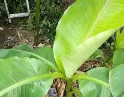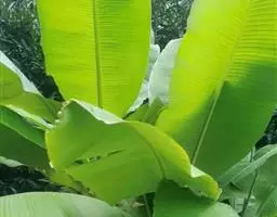 红蕉,假茎高1-2米。叶片长圆形,长1.8-2.2米,宽68-80厘米,叶面黄绿色,叶背淡黄绿色,…