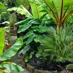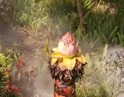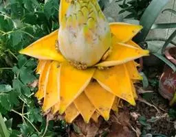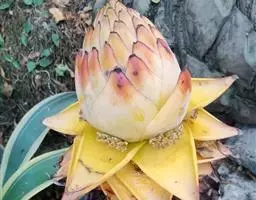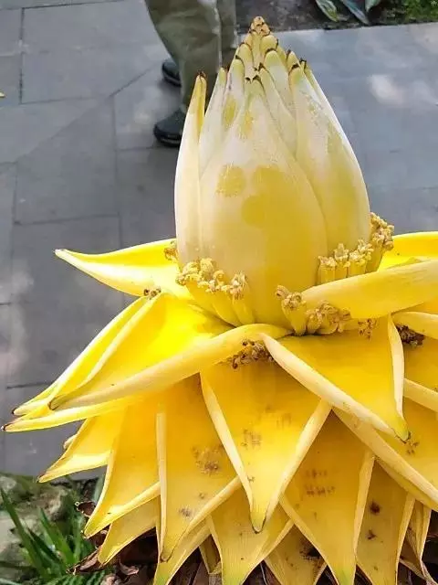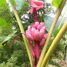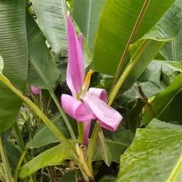 紫苞芭蕉形如一枝亭亭玉立、含苞待放的荷花,但却开在高高的芭蕉树上,这就是紫苞芭蕉。