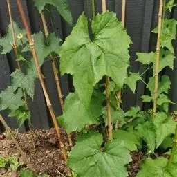 植株吊蔓与调整:当植株长到6-7片叶后开始甩蔓时,及时拉线吊蔓。随着茎蔓的生长,茎蔓往吊绳上缠绕,以后每2-3天一次。