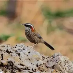 雄性幼鸟类似雌鸟,但喉部白色,有暗斑。腰白色;额微红。接近成熟期的幼鸟颈部有细微羽缨。