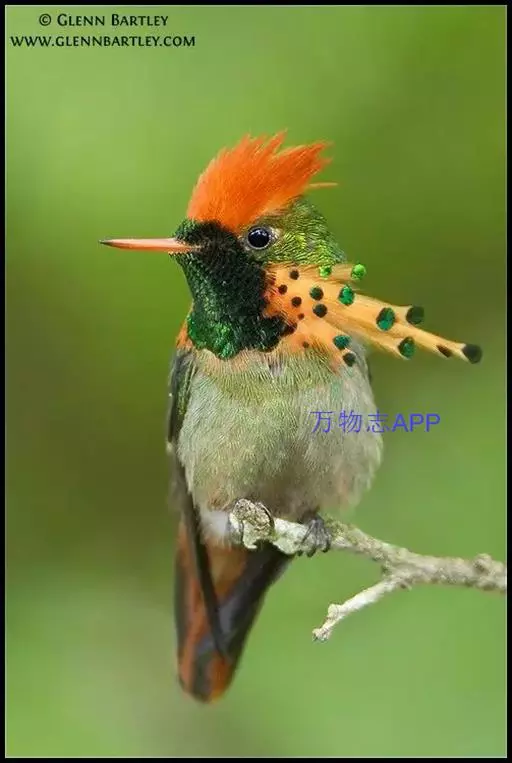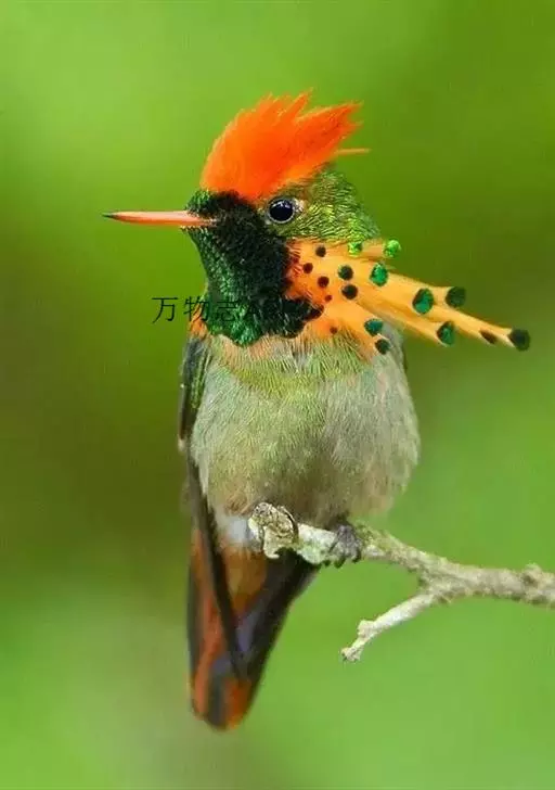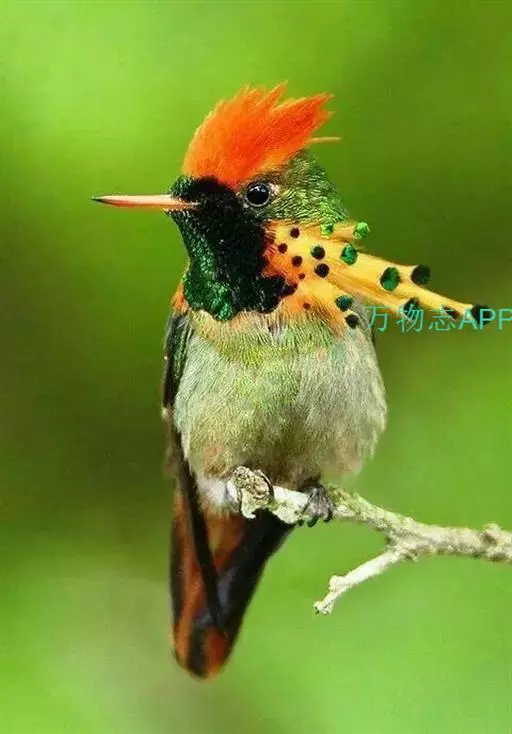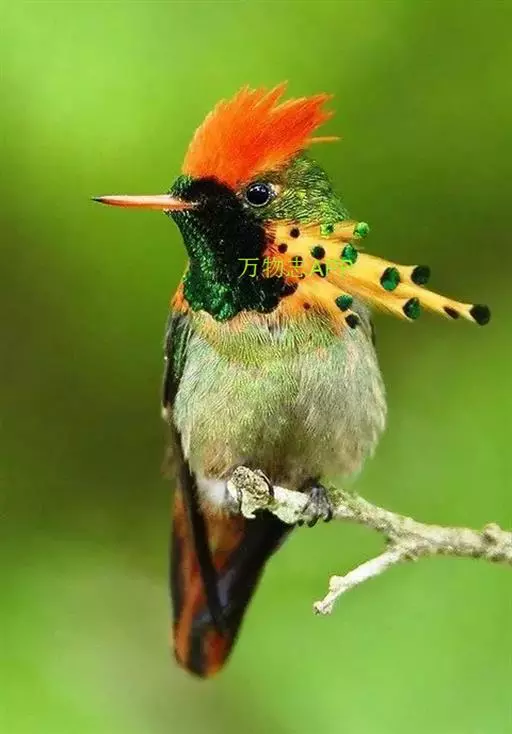 缨冠蜂鸟是世界上体型最小的蜂鸟之一,体长仅6.6厘米,重约2.3克。背部铜绿色,额及下体绿色。臀部…
