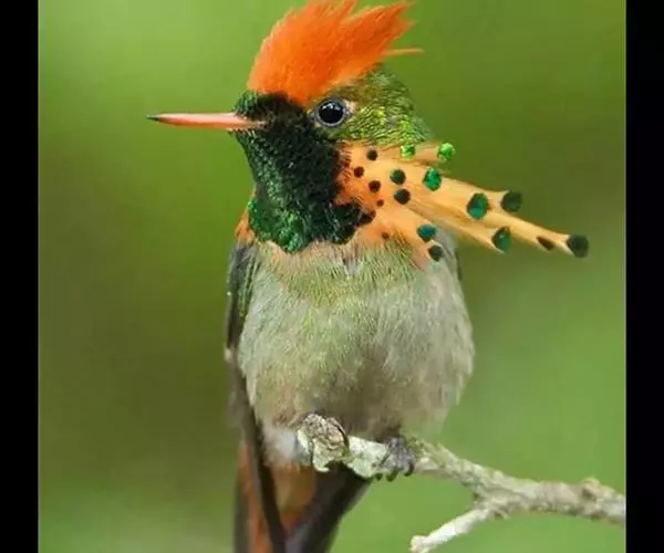 缨冠蜂鸟(学名:Lophornis ornatus)是世界上体型最小的蜂鸟之一,体长仅6.6厘米,重约2.3克。背部铜绿色,额及下体绿色。臀部具白色条纹,飞行时尤显。缨冠蜂鸟的红褐色冠羽呈火炬状,不算长,非常醒目。冠羽与脸颊突起的橙色或红色的缨羽为该鸟主要特征,缨羽在阳光照射下呈现金属光泽。