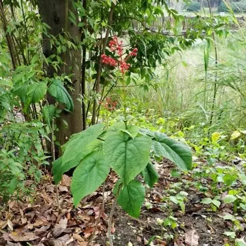 赪桐 Sweet)是唇形科、大青属灌木,高1-4米,叶片圆心形,顶端尖或渐尖,基部心形,…