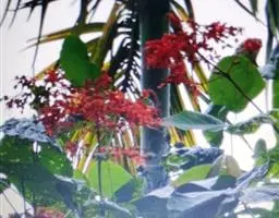 烟火树 Merr.)是唇形科、大青属常绿灌木或小乔木,株高可达4米。幼枝方形,墨绿色。叶对生,…