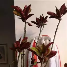 生长适温为:3~9月为25~30℃;9~3月为18~20℃,越冬温度要求高于15℃。若室温低于10℃,则可使植株停止生长,且会引起落叶。花叶木薯生长迅速,萌发力强,扦插苗盆栽后高20~25厘米时,需进行摘心,促其多分枝。盆栽植株,宜每年换盆一次,并结合对地上部枝条进行修剪,每盆留3~4主枝即可。压低株型,剪除杈枝和枯枝,使植株保持优美的株型。