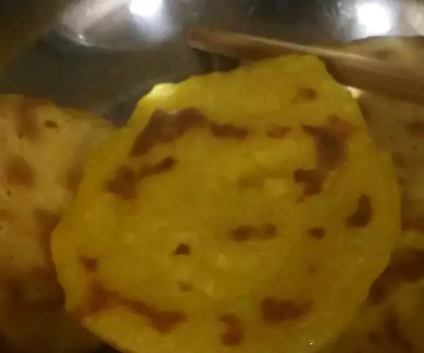 烤饼,也是江苏省镇江市丹阳市吕城镇的特色小吃,韭菜猪肉馅,用面团包好后,压成薄圆形,约0.5厘米厚,放油锅煎制而成。味道鲜美,入口滑腻。