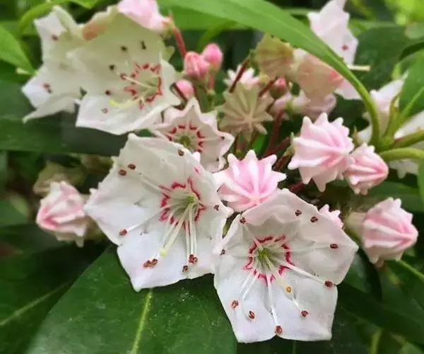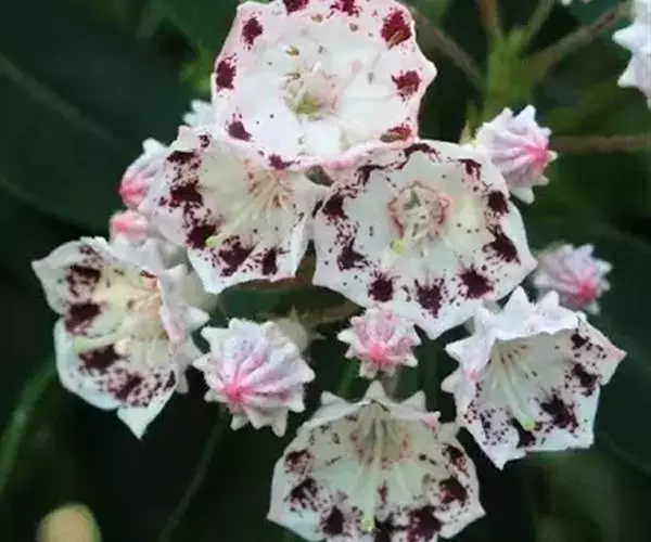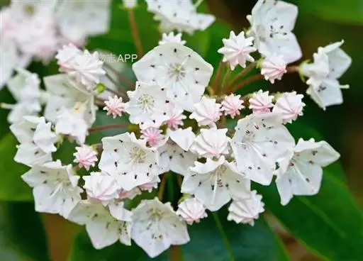 玛德琳山月桂 ( Kalmia latifolia ‘Madeline’),花色为白色;