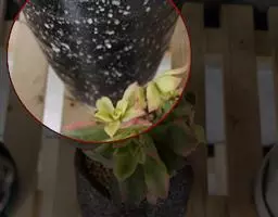 当冬季气温降到5℃以下,再加上盆土潮湿,易导致植物状嫩叶受冻寒而倒状,严重时会引起块茎腐烂,很难恢复生机。