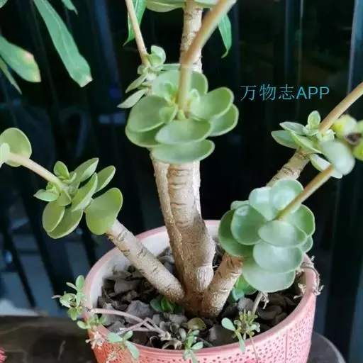 金钱木(学名:Portulaca molokiniensisHobdy)马齿苋属多年生常绿草本植物,因肥厚的叶片排列整齐酷似铜钱而得名,是优良室内观叶植物。