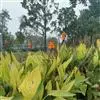 金脉美人蕉叶片淡黄色,叶脉绿化,叶缘具红边,全缘,大花美人蕉之变种