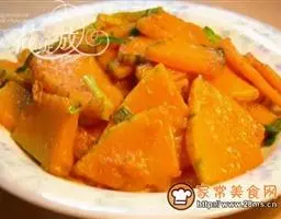 如果在炒南瓜的过程中太干,也可以沿炒锅边缘调入少许水或高汤。
