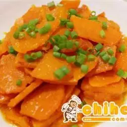 3.大火加热炒锅中的油,爆香香葱段,咸鸭蛋黄白糖 鸡精,味精,然后用手勺不间断的搅拌,待到白糖融化之后放入炸好的南瓜条,颠覆几次南瓜条上沾满蛋黄之后便可出锅小贴士: