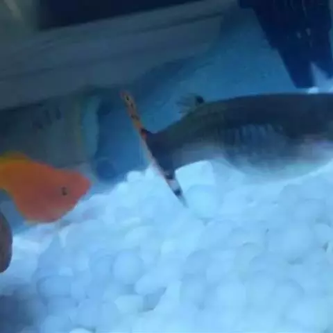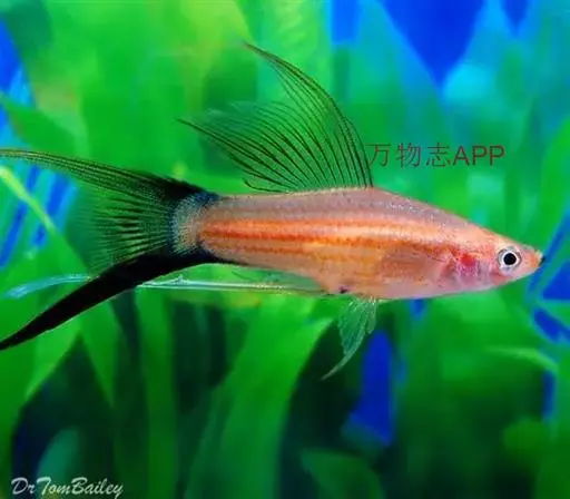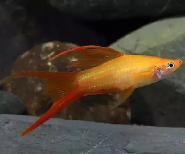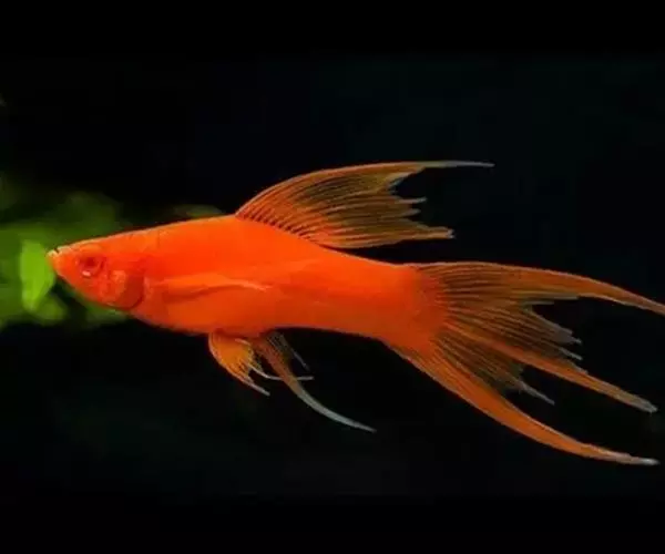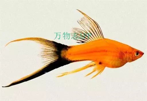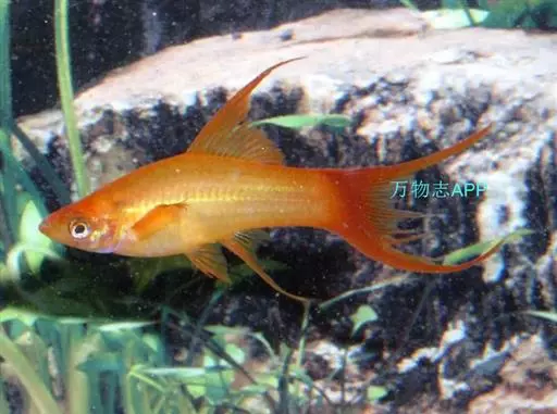 剑尾鱼属花鳉科剑尾鱼属的一种热带鱼。产于墨西哥、危地马拉等地的江河流域。性情温和,很活泼,可与小型鱼混养。雄鱼尾鳍下叶有一呈长剑状的延伸突。与新月鱼(Platy)近缘,广泛用于遗传及医学研究。剑尾鱼原为绿色,体侧各具一红色条纹,但已培育出许多花色品种。