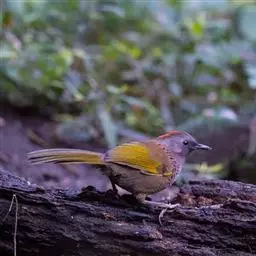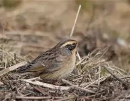 雌鸟头顶颜色与雄体相似,贯眼纹为栗褐色不完整,仅限于眼后。眼先灰白色。背、腰棕褐色。下体密布黑褐色鳞纹。