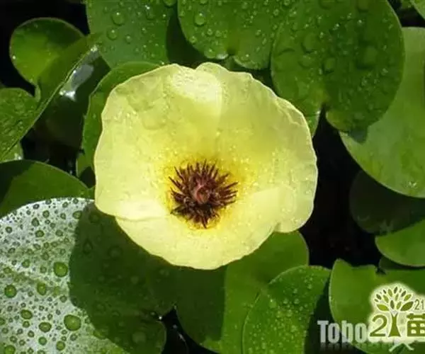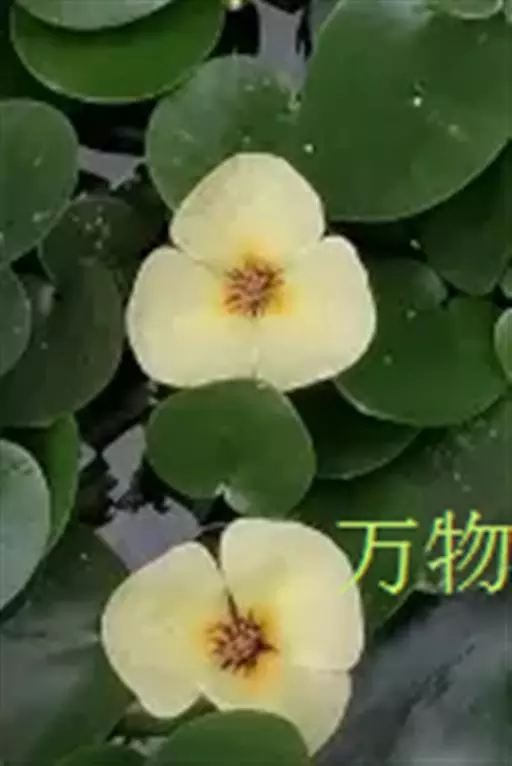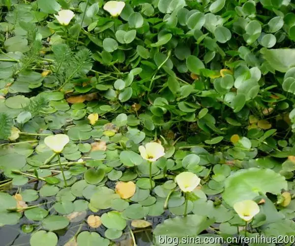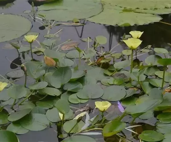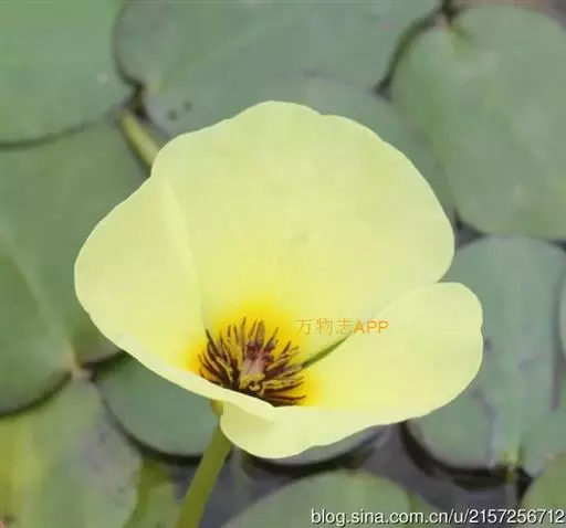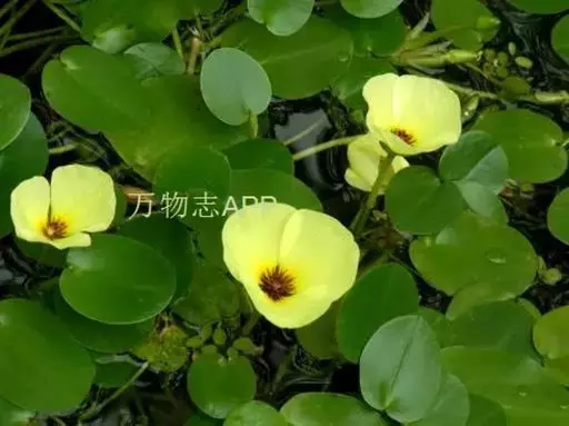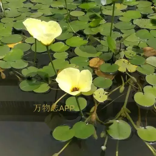 株高5cm,茎圆柱形。根自水中茎节处发出。叶簇生于茎上,叶片呈卵形至近圆形,具长柄,长4~8cm,宽3~6cm,顶端圆钝,基部心形,全缘。叶柄圆柱形,长度随水深而异,有横隔。伞形花序,小花具长柄,罂粟状,花黄色;蒴果披针形。种子细小,多数,马蹄形。花期6~9月。