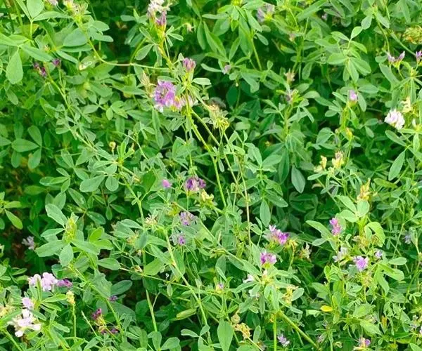 紫花苜蓿以粗蛋白质含量高而著称。苜蓿的粗蛋白质中氨基酸种类齐全、组成合理,含有20种以上的氨基 酸,包括人和动物的全部必需氨基酸,以及一些稀有氨基酸如瓜氨酸、刀豆氨酸等。紫花苜蓿的蛋白质及氨基酸比例均衡,与动物体内的蛋白质及氨基酸组成比例相似,转化效价较高。