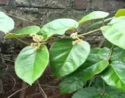 藤茎圆柱形,多分枝,直径0.2-1厘米;表面红棕色,具点状皮孔和不定根;质较硬,折断面纤维状,黄白色,有时中空。叶对生,具短柄,完整叶片椭圆形或卵状椭圆形,长2-10厘米,宽0.8-3.5厘米,先端渐尖或钝,有时微凹,叶缘略反卷,上表面黄绿色,下表面较浅,叶脉羽状,下表面较清晰,稍凸起;革质,折断时可见白色绵毛状丝。气微,味微苦。以叶多、色绿者为佳。