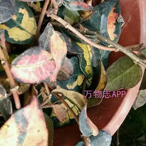 五彩络石为常绿蔓性藤本植物。匍匐生长,茎具白色乳汁,叶对生,革质,卵形,长3厘米,宽2厘米。喜阳耐…