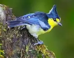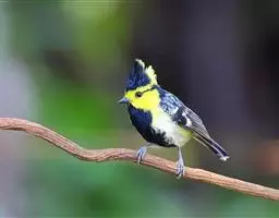 台湾黄山雀体长约13厘米。头顶至后颈黑色,有一长的黑色羽冠,羽冠末端和后颈中央白色。背苍绿色,…