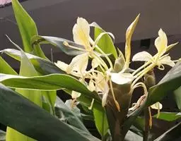 姜花(拉丁文名:Hedychium coronarium Koen)又名野姜花,是姜科姜花属的淡水草本植物,高1-2米,花序为穗状,花萼管状,叶序互生,叶片长狭,两端尖,叶面秃,叶背略带薄毛。不耐寒,喜冬季温暖、夏季湿润环境,抗旱能力差,生长初期宜半阴,生长旺盛期需充足阳光。土壤宜肥沃,保湿力强。姜花有清新的香味,放于室内可作天然的空气清新器。色泽圆融,一般为白色花朵。盆栽可供观赏,白色花卉如蝴蝶,所以又称蝴蝶姜、白蝴蝶花等。原产亚洲热带,印度和马来西亚的热带地区,大概在清代传入中国。另外,姜花是古巴和尼加拉瓜的国花。