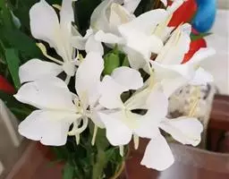 人说牡丹象征宝贵,我道姜花象征纯朴。也许由于姜花蕴含着纯朴的气质,至今为政清廉、高风亮节者赏之;一笔在手,舞文弄墨者赞之;即使终年劳顿、寂寂无闻的下里巴人也爱之。如果留心观察一下,在城镇街头上,许多家庭妇妇去市场买菜时,常顺便买几枝回家里摆设。那怕是花花世界的香港,每逢夏秋之间,几乎所有花店、花摊都有姜花出售,它的价格比剑兰、菊花、康乃馨便宜一半有多,采购者络绎不继。有些出租汽车司机,也用个小瓶在车厢内插上一两枝,借以享受一下它那清新的香味。姜花并非中国的特产,而是从世界引进的洋花之一,其老家是印度和马来西亚的热带地区。大概在清代传入中国。