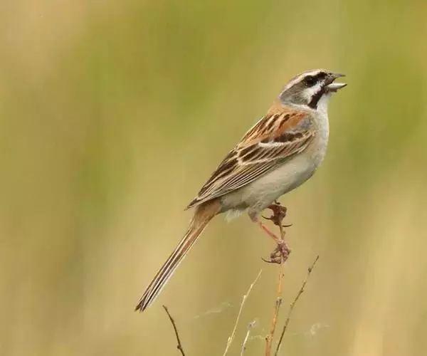 灰头鹀:属小型鸣禽。体重14-26克,体长125-161毫米。雄鸟嘴基、眼先、颊黑色,…