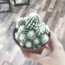 江守玉为仙人掌科强刺球属,植株扁圆形至球形,后成圆柱状,体色灰绿,刺座上附生白色绒毛,花橙黄色,漏斗状。本品种适合露地或盆栽观赏。