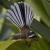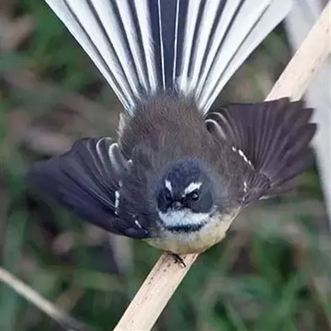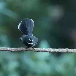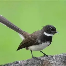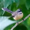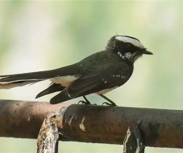 白眉扇尾鹟:体长17厘米,是一种中等体型的灰色扇尾鹟。色彩独特。宽宽的眉纹及前额白色,尾有白色宽边…