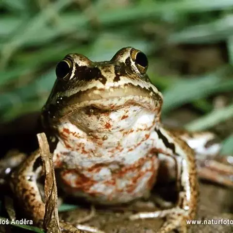 黑斑蛙成蛙体长一般为7-8厘米,体重为50-60克,最大个体重为100克左右。一般情况下,同龄黑斑蛙的雌蛙比雄蛙大。黑斑蛙的身体分为头、躯干和四肢三部分,成体无尾。