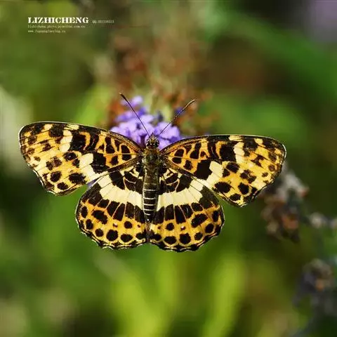 大红蛱蝶Vanessa indica Herbst,翅黑褐色,外缘波状。前翅M1脉外伸成角状,…