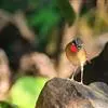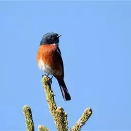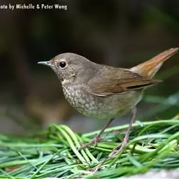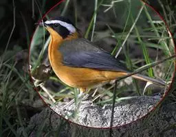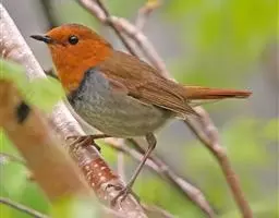 红尾歌鸲:体长13-15厘米。上体橄榄褐色。尾羽棕栗色,眼先和颊黄褐色,眼周淡黄褐色。…