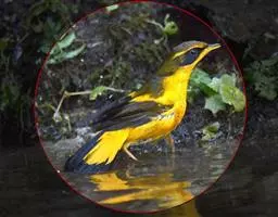 金色林鸲是鹟科、鸲属小型鸟类,体长12-15厘米。头顶至背黄橄榄绿色,眼先和头侧黑褐色,眉纹金橙黄色。…