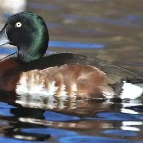 青头潜鸭,是雁形目鸭科潜鸭属的迁徙性鸟类。雄性头部和颈部为黑色,有绿色光泽,上体为黑褐色,…